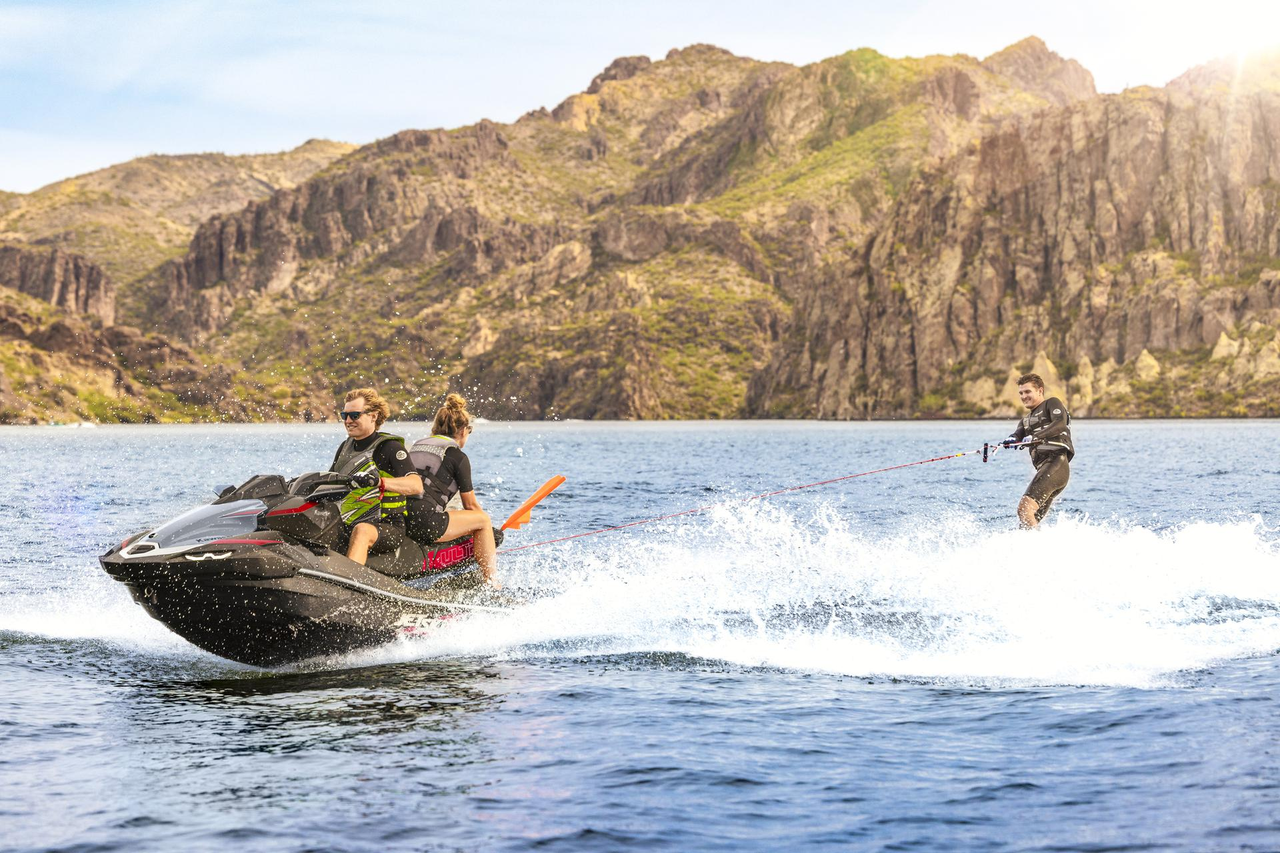 Get everything you need to enjoy a thrilling day out on the water. 3-passenger seating and a powerful 1,498cc engine ensure a day to remember for the entire crew. The modern hull design, same as the flagship Jet Ski Ultra 310 model, is something worth showing off whether you're parked in the driveway or in the water.