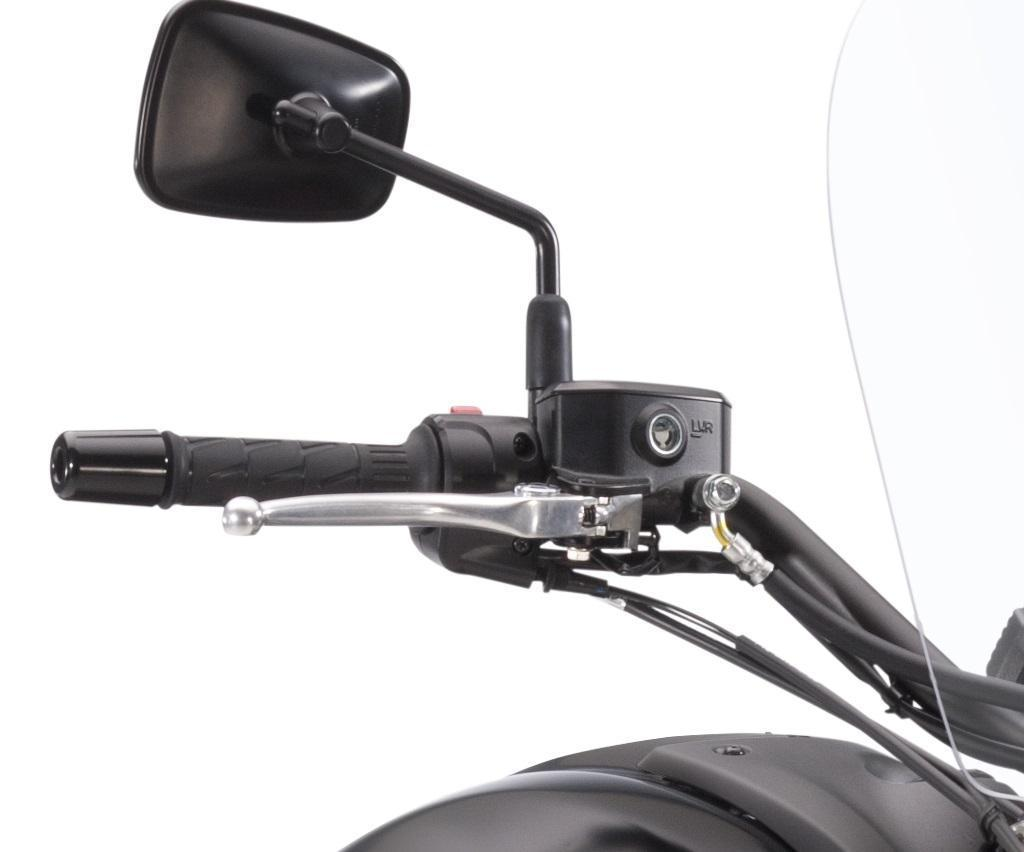 Black Fatbar-style handlebar with ends that are positioned more inward. Additionally this Easy-Reach handlebar effectively comes 36mm closer to the rider. Including cable ties and bolts.