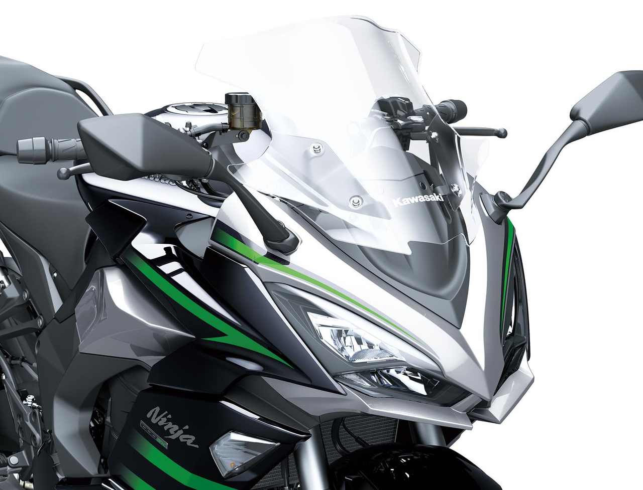 Large clear windscreen, designed to provide additional rider comfort. This screen is approximately 24 mm higher than the standard mounted windscreen. Kawasaki branded product, developed by Kawasaki and fully road legal.