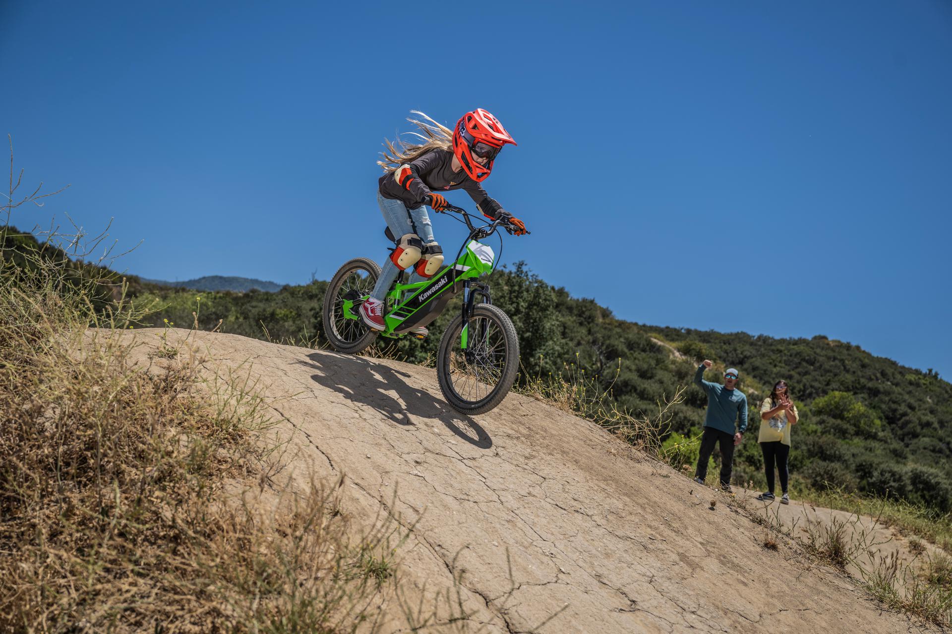 Excitement and fun await with this light, aggressive electric bike perfect for off-road play time. Three selectable speed modes mean riders can find the right speed for their skillset and current riding conditions, dialing in the fun when it’s time to play and building confidence with every outing. Riders will feel like a part of the Kawasaki family thanks to the Lime Green paint and motocross-inspired looks.