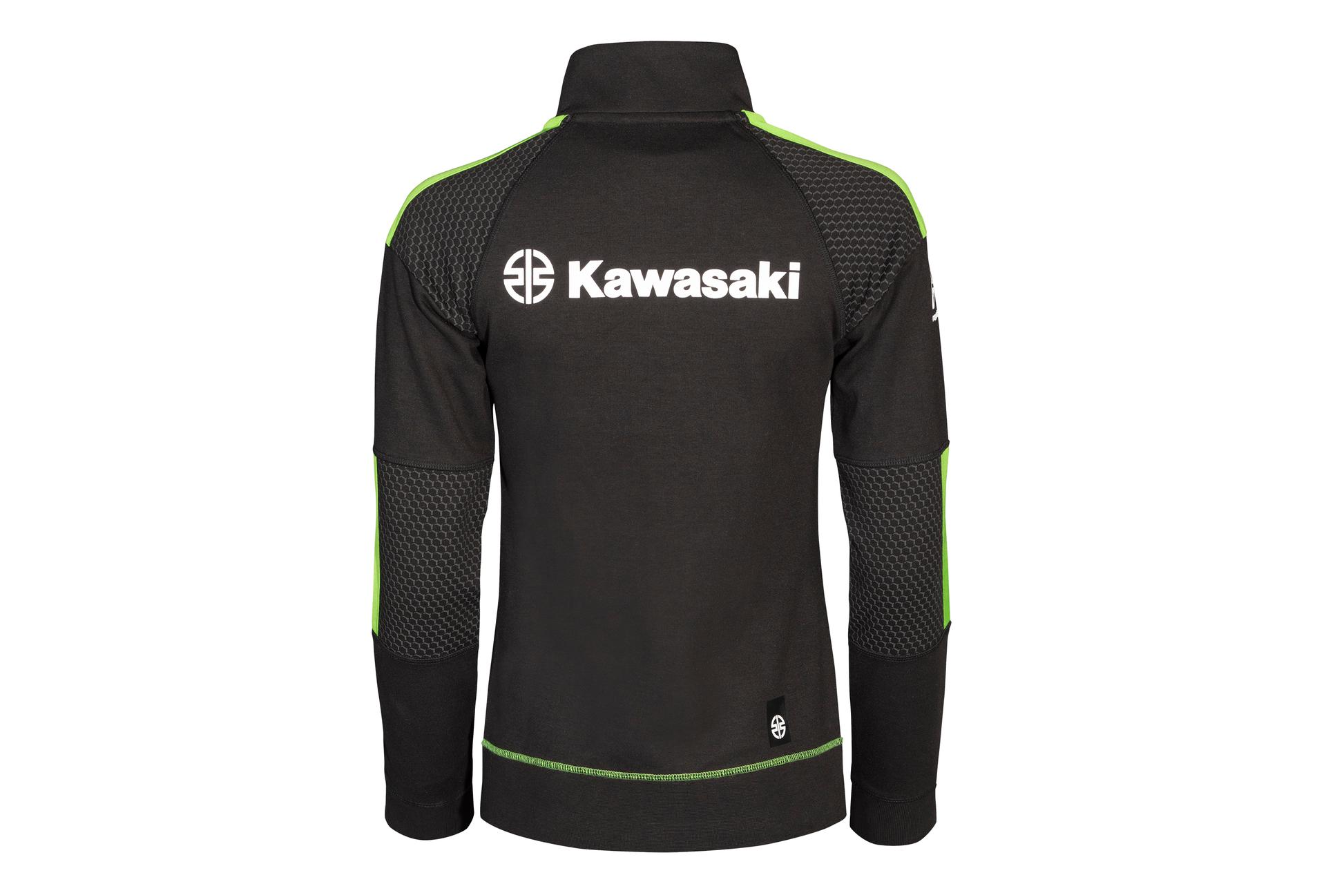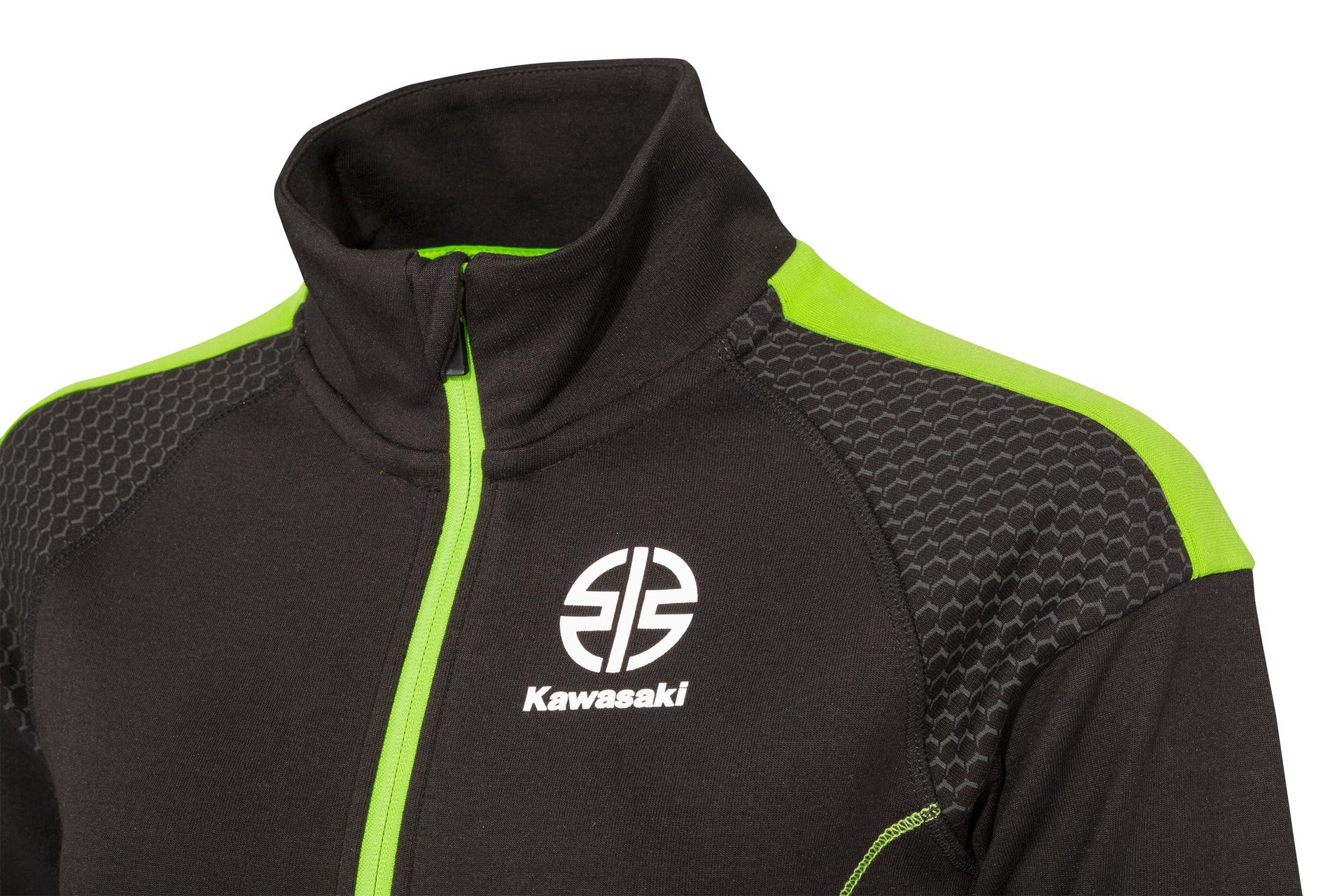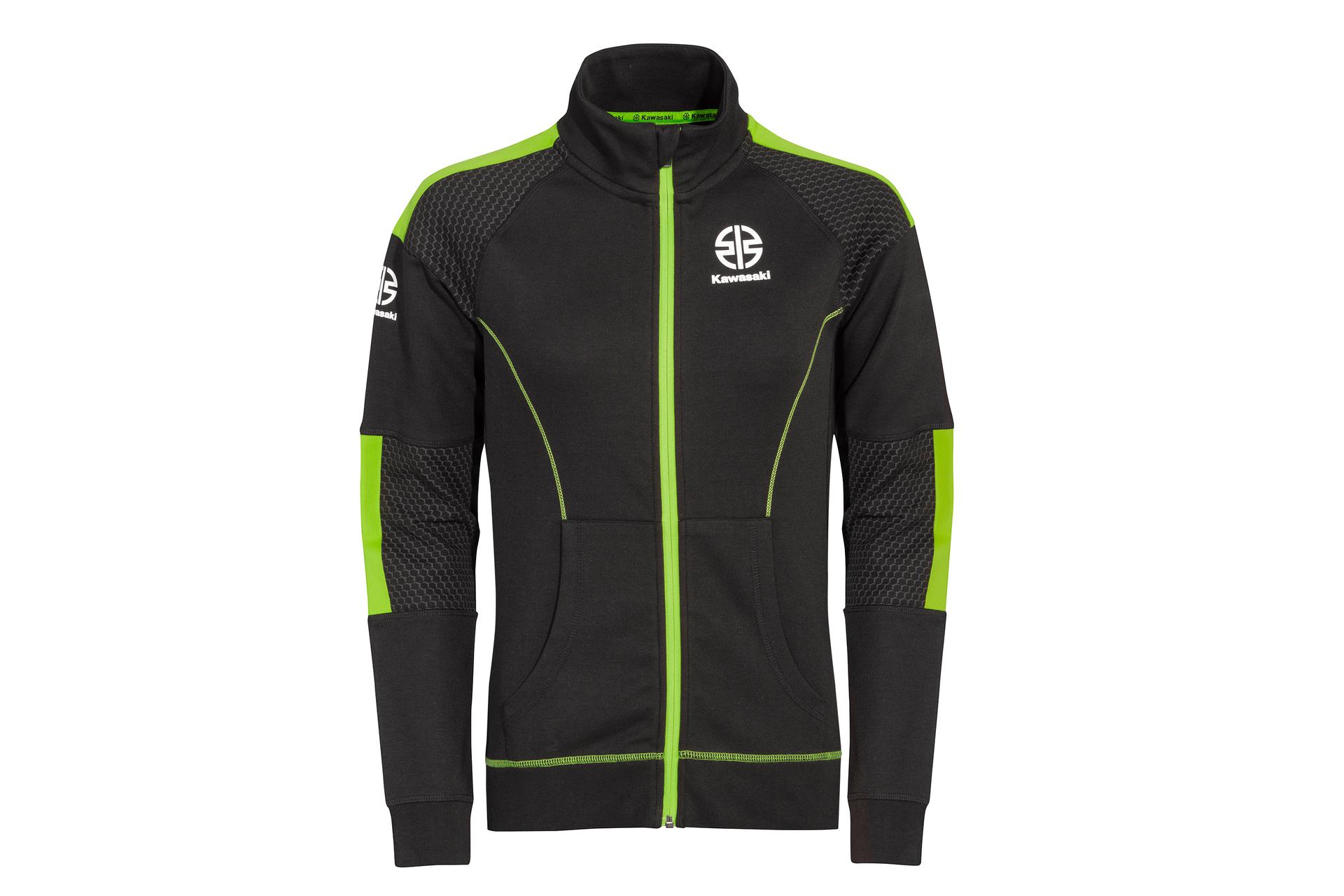 Bluză de trening cu fermoar și buzunare tip marsupiu, guler înalt și tiv și manșete raiate.
